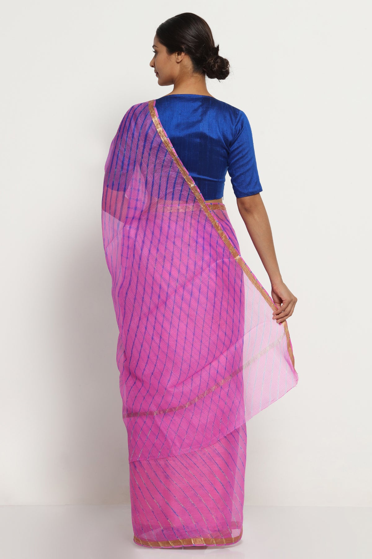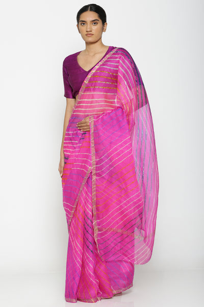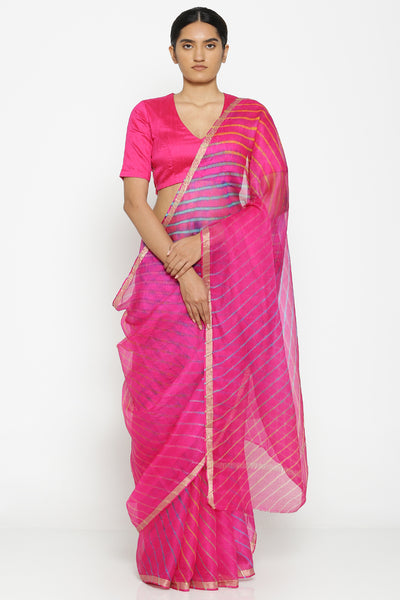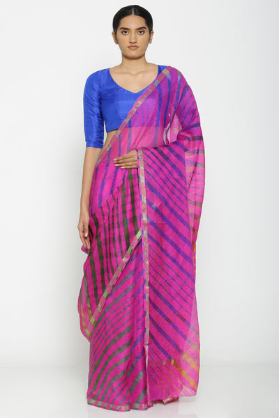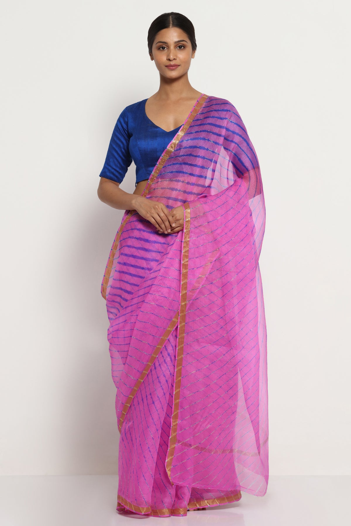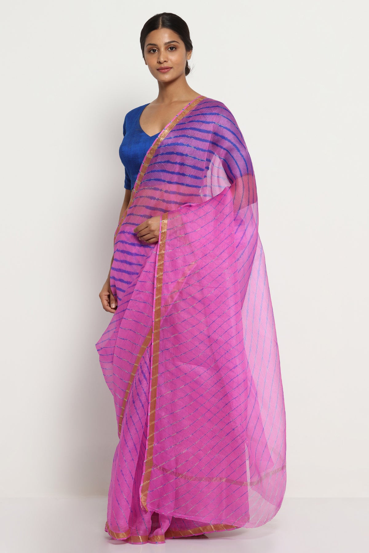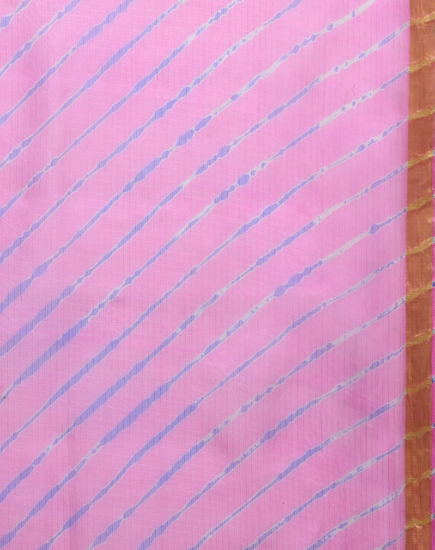Pink and Blue Pure Silk Kota Doria Saree with Traditional Leheriya Pattern