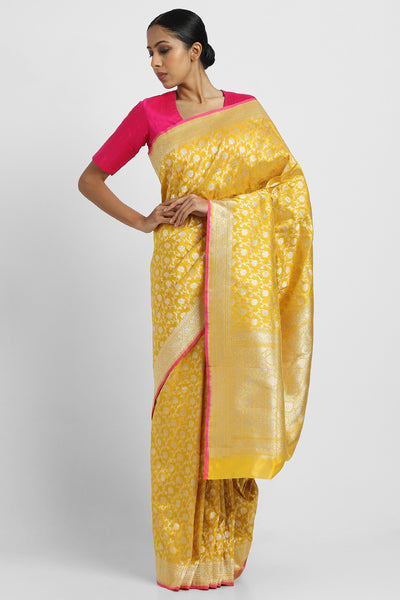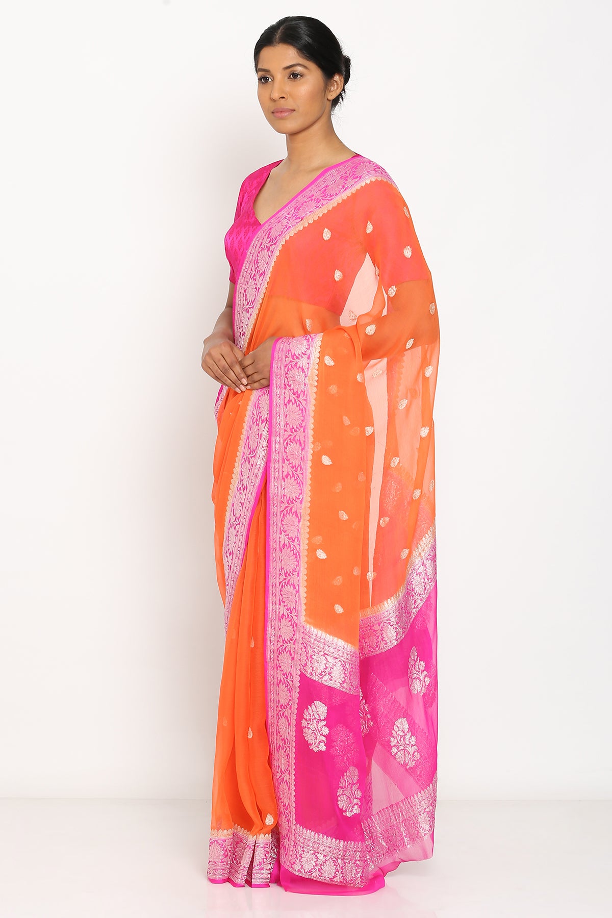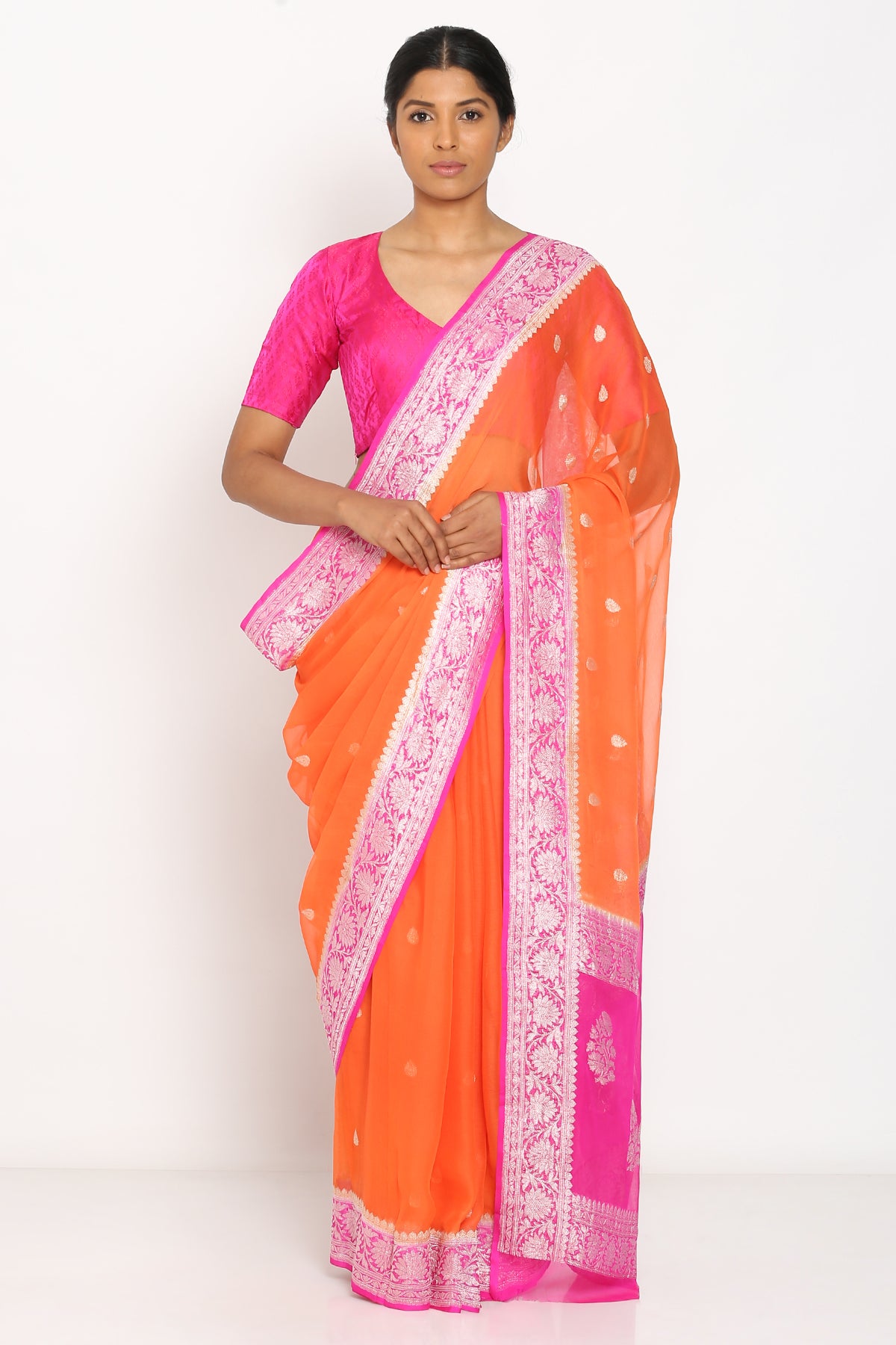 Marked by exquisite gold and silver threadwork, and fine craftsmenship these sarees are said to showcase the confluence of rivers Ganga, and Yamuna, that are believed to be black and white respectively. Rooted in rich heritage, and history, it's no surprise that the Banarasi is possibly the most sought-after saree in the country.