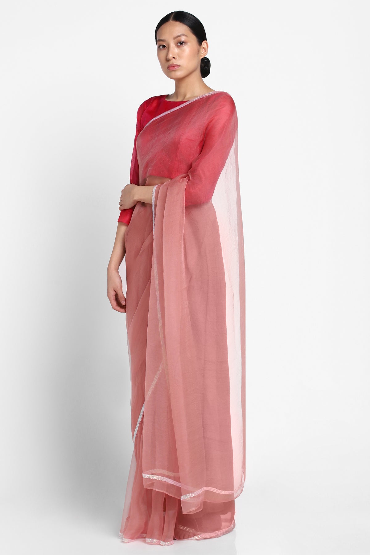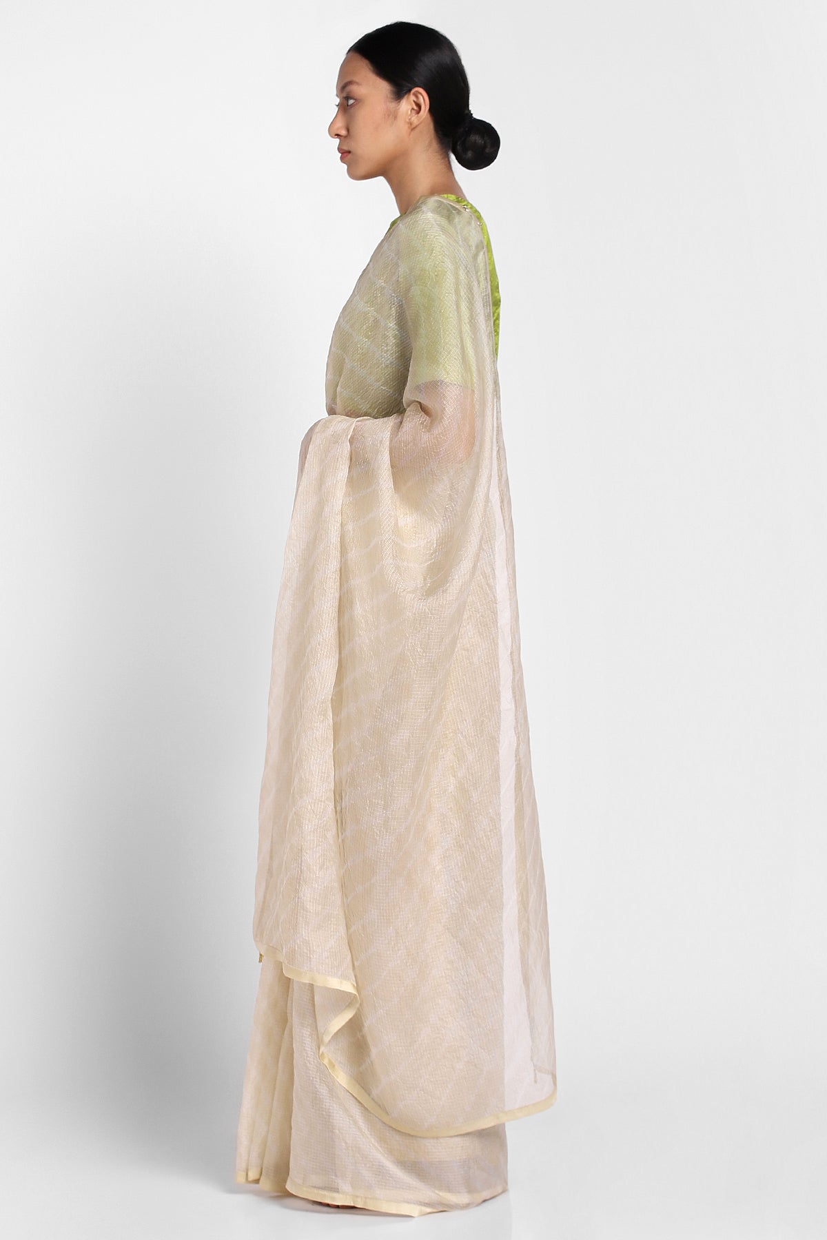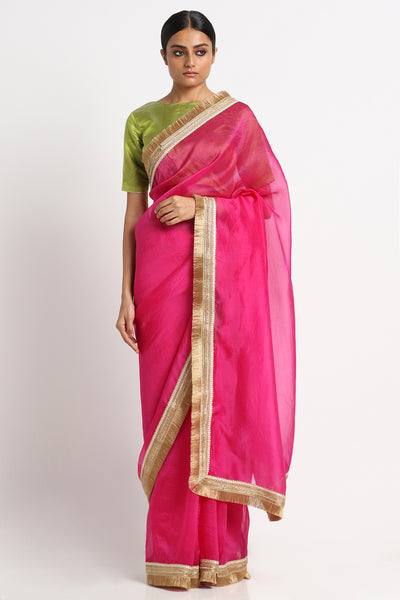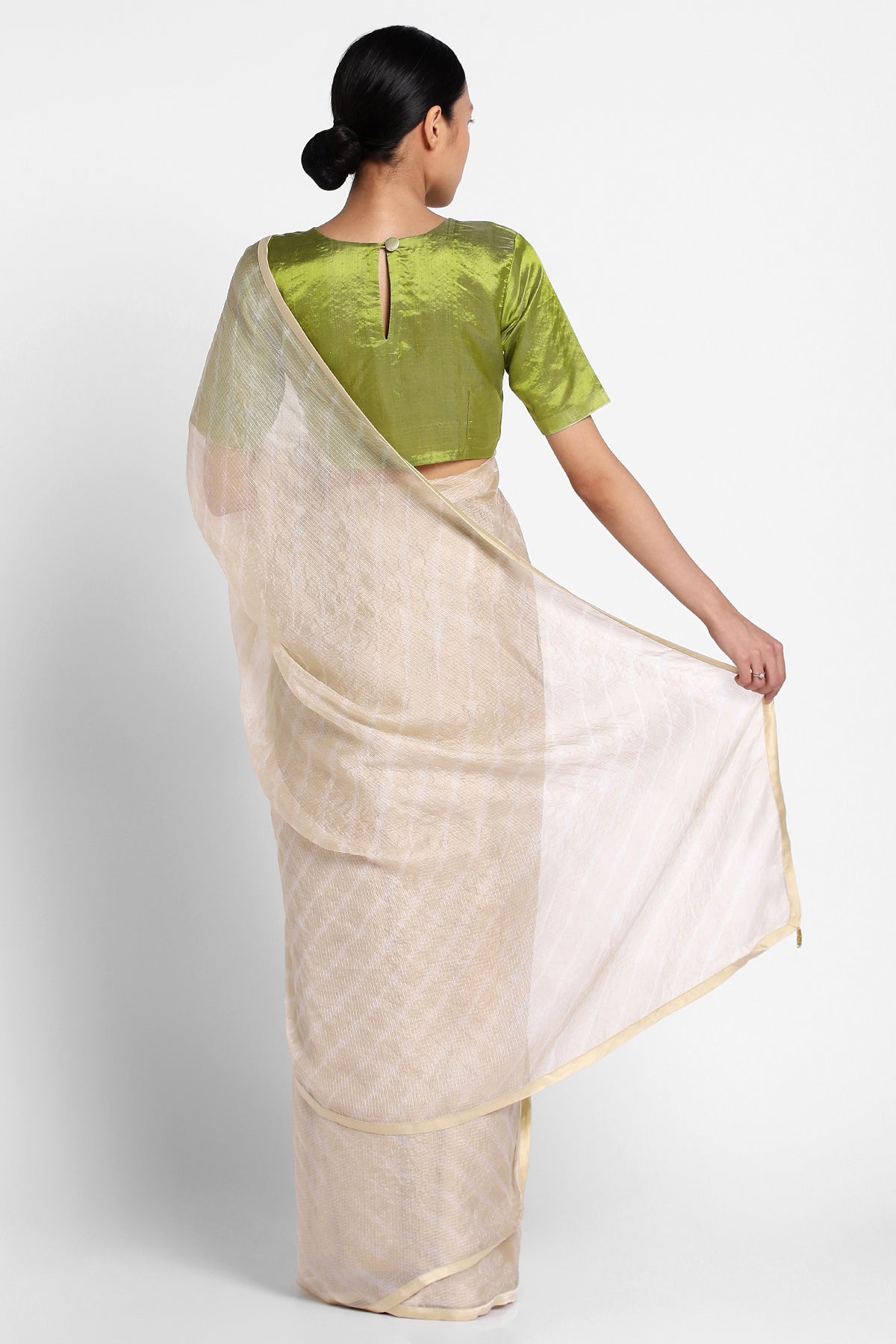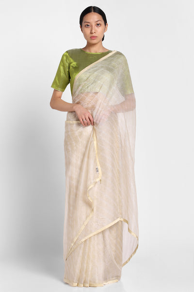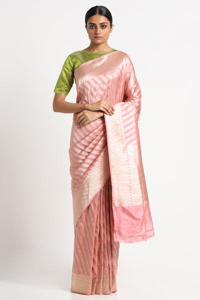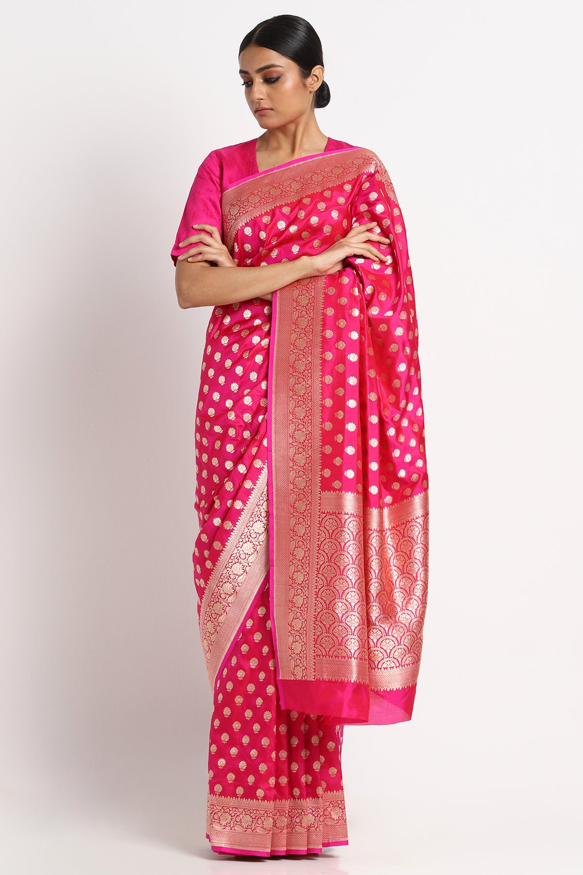 This saree comes with a blouse fabric woven along the length. Blouse worn by model is only for styling.