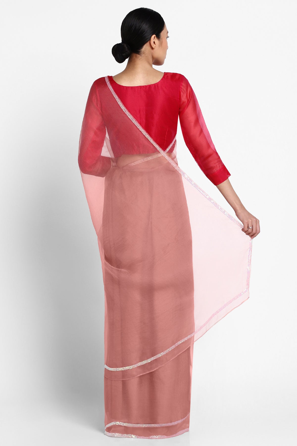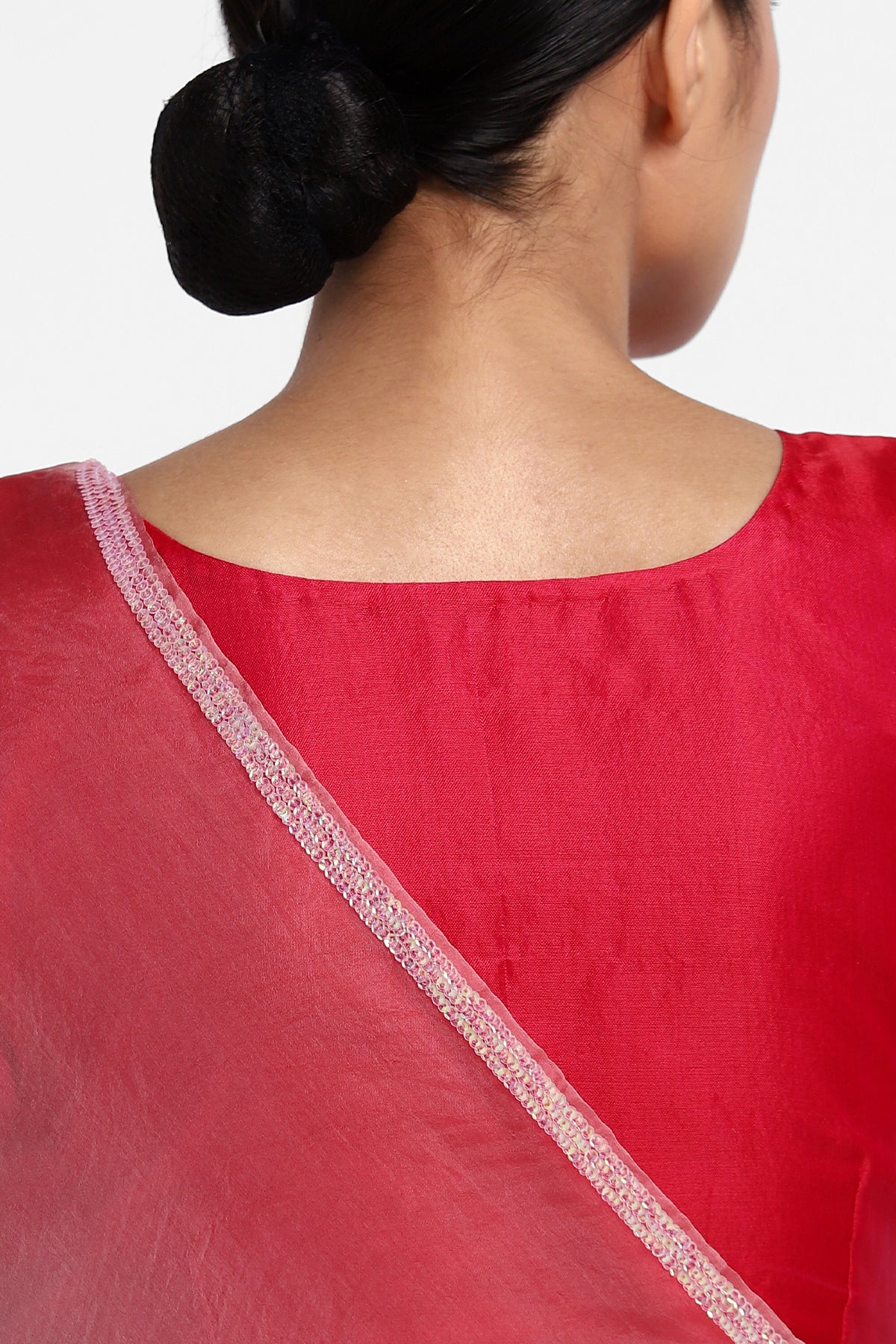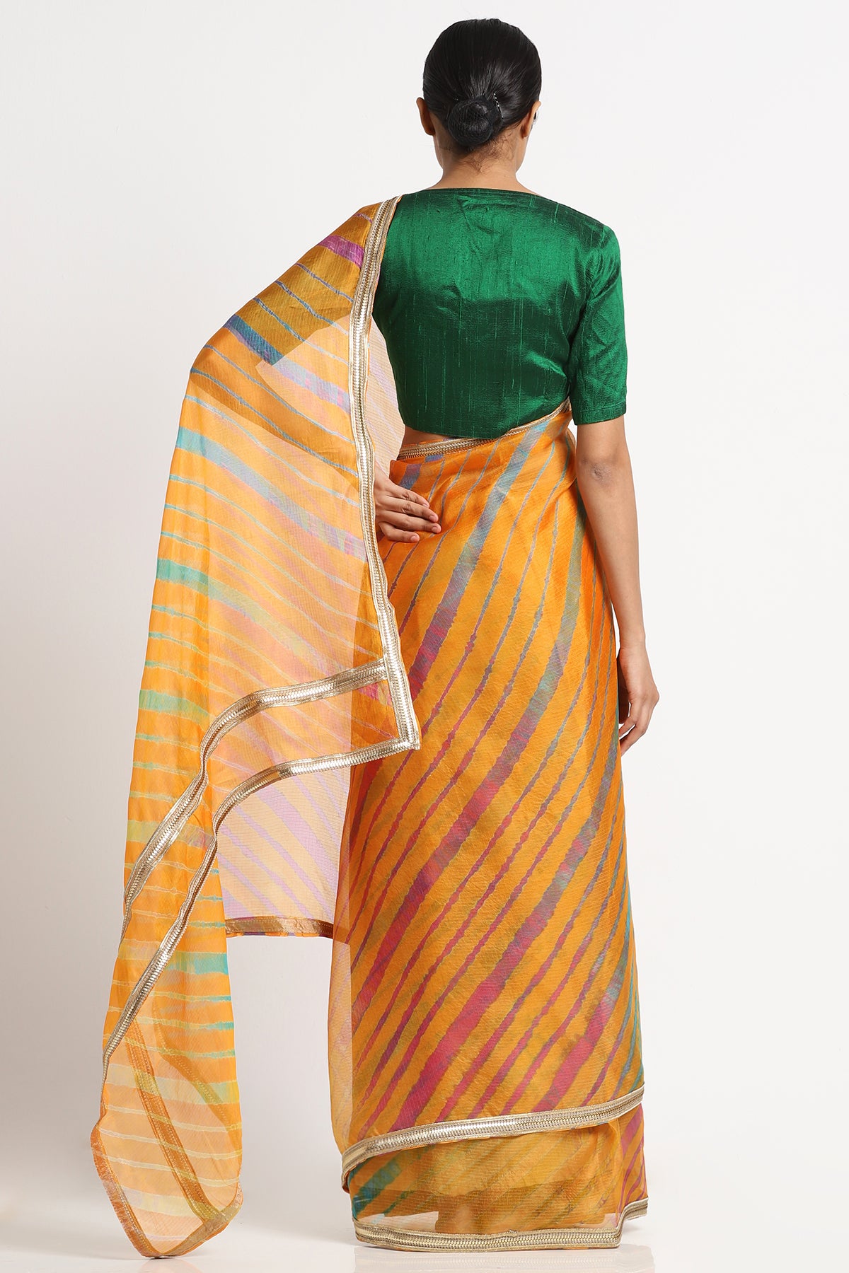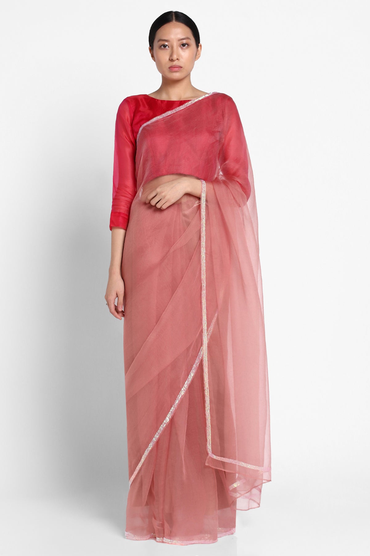 This saree comes with a blouse fabric woven along the length. Blouse worn by model is only for styling.