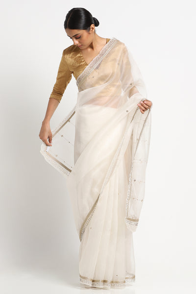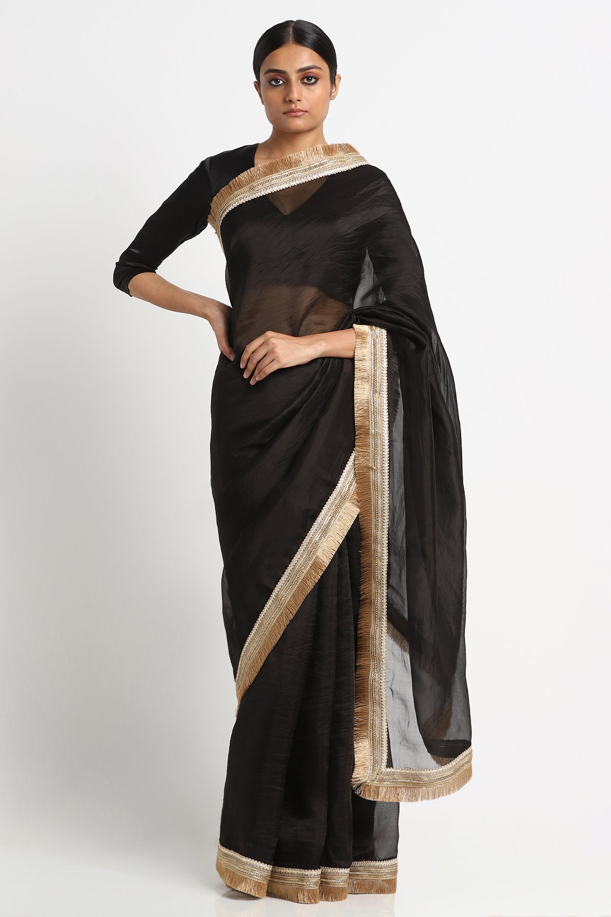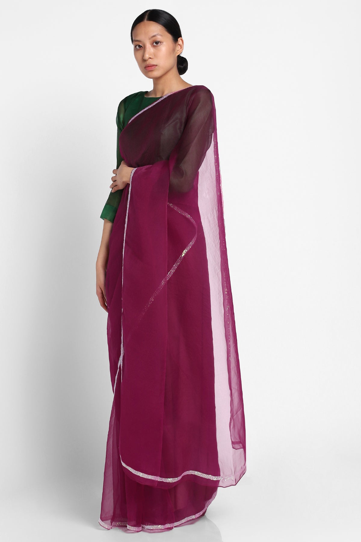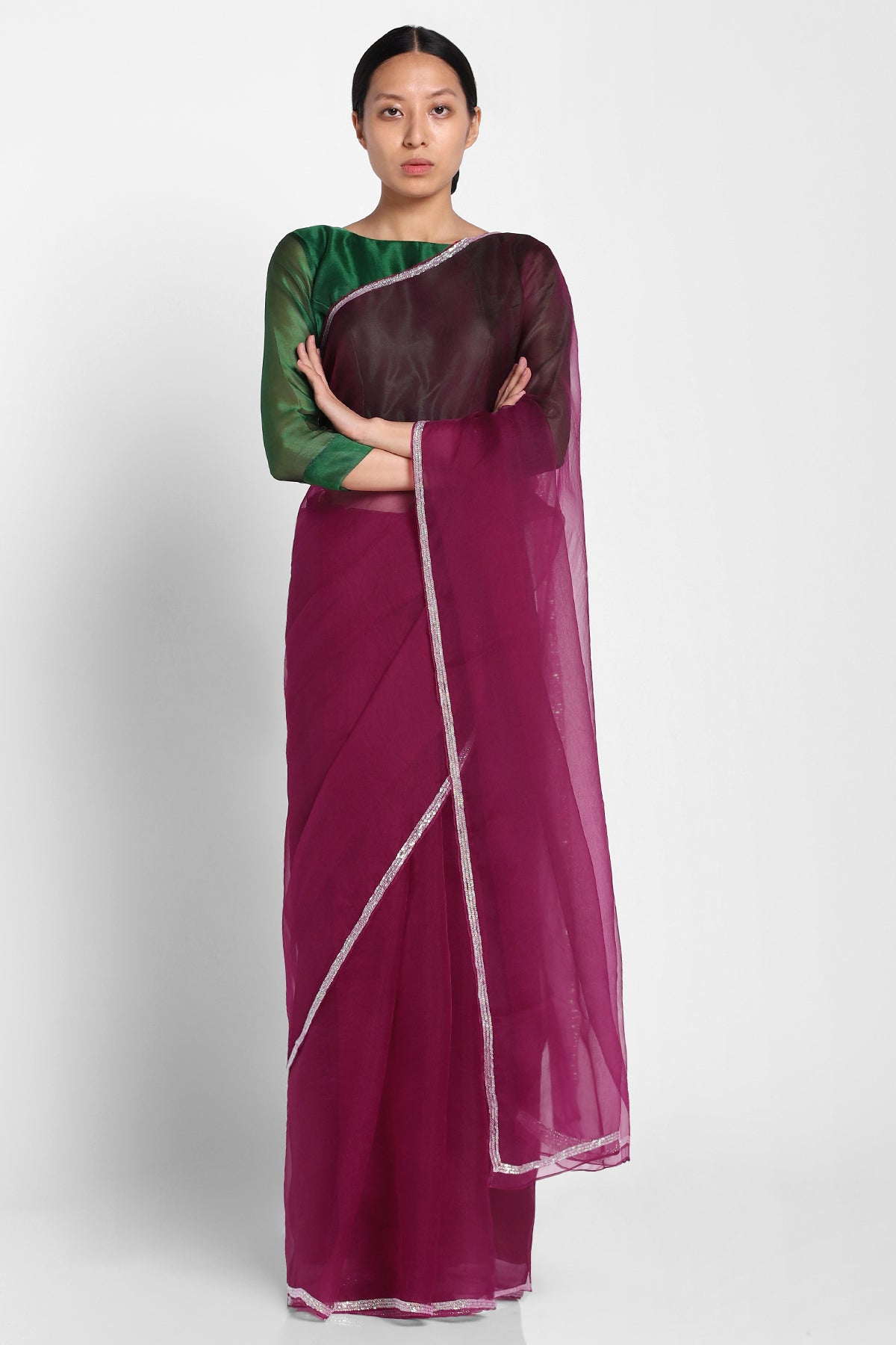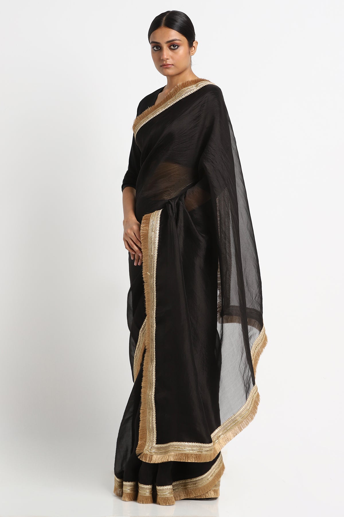 Dry clean only, store the saree in a breathable cloth bag and air in shade every few months.