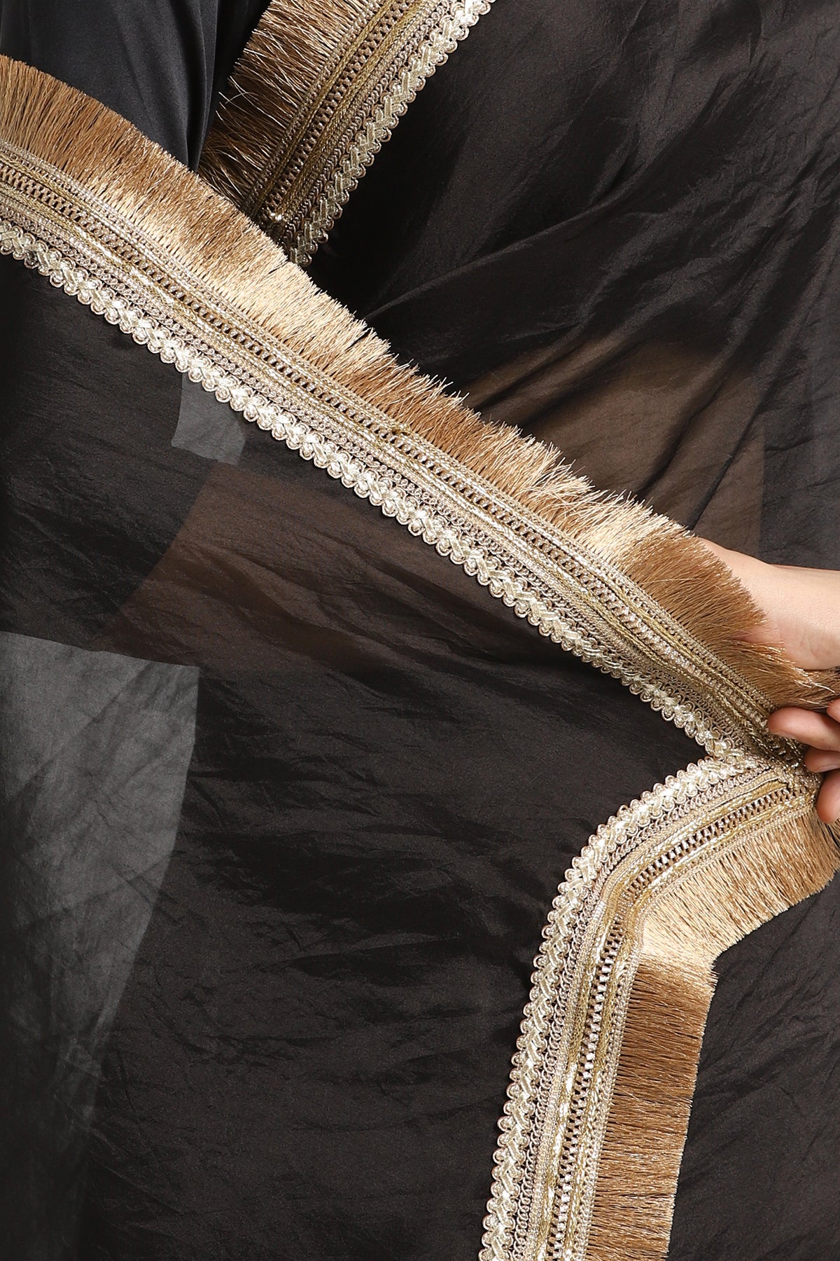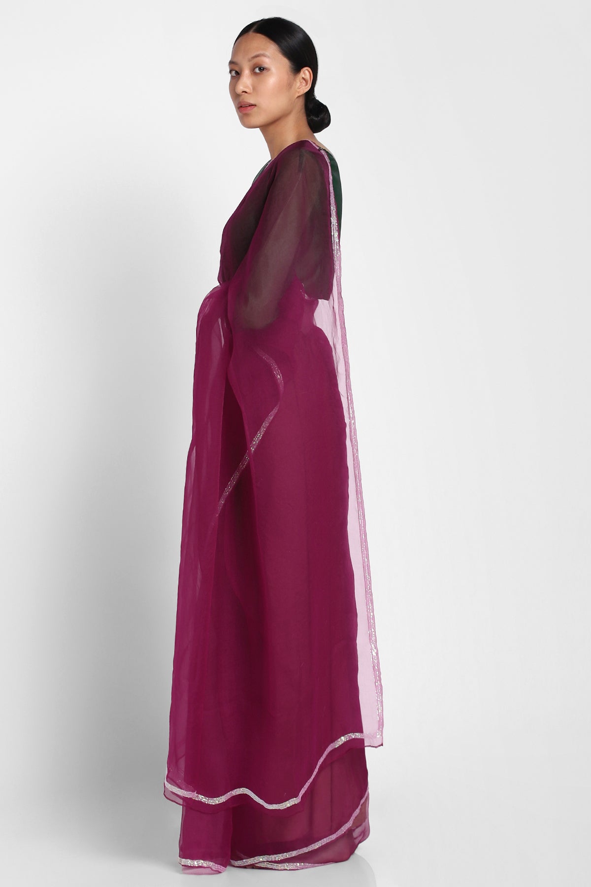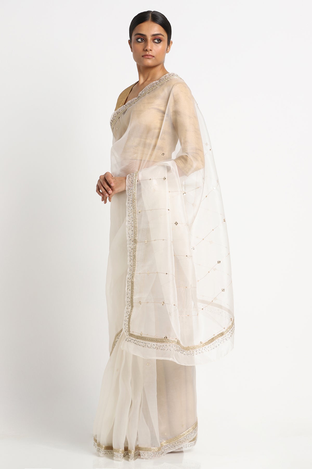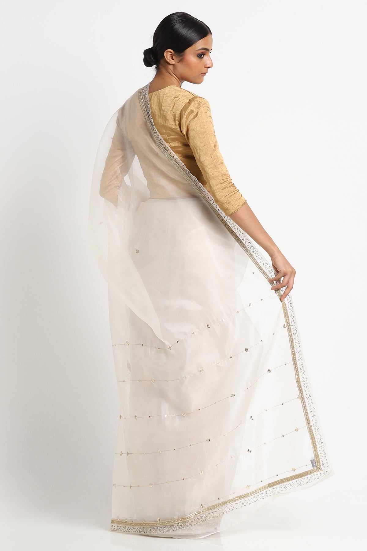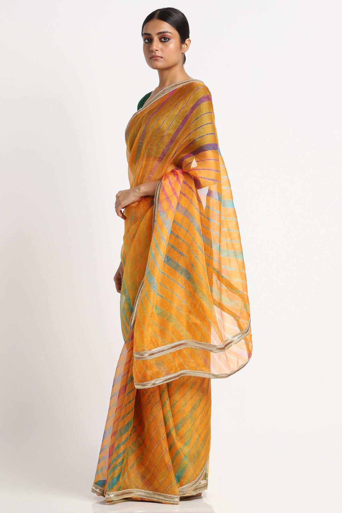 Dry clean only, store the saree in a breathable cloth bag and air in shade every few months.