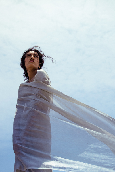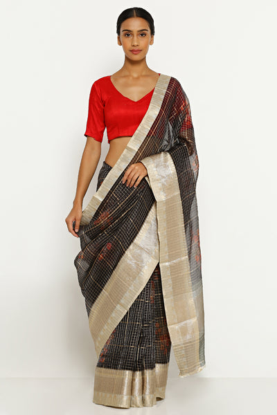 Smoke Grey Dupion Chinon Silk Floral Saree
