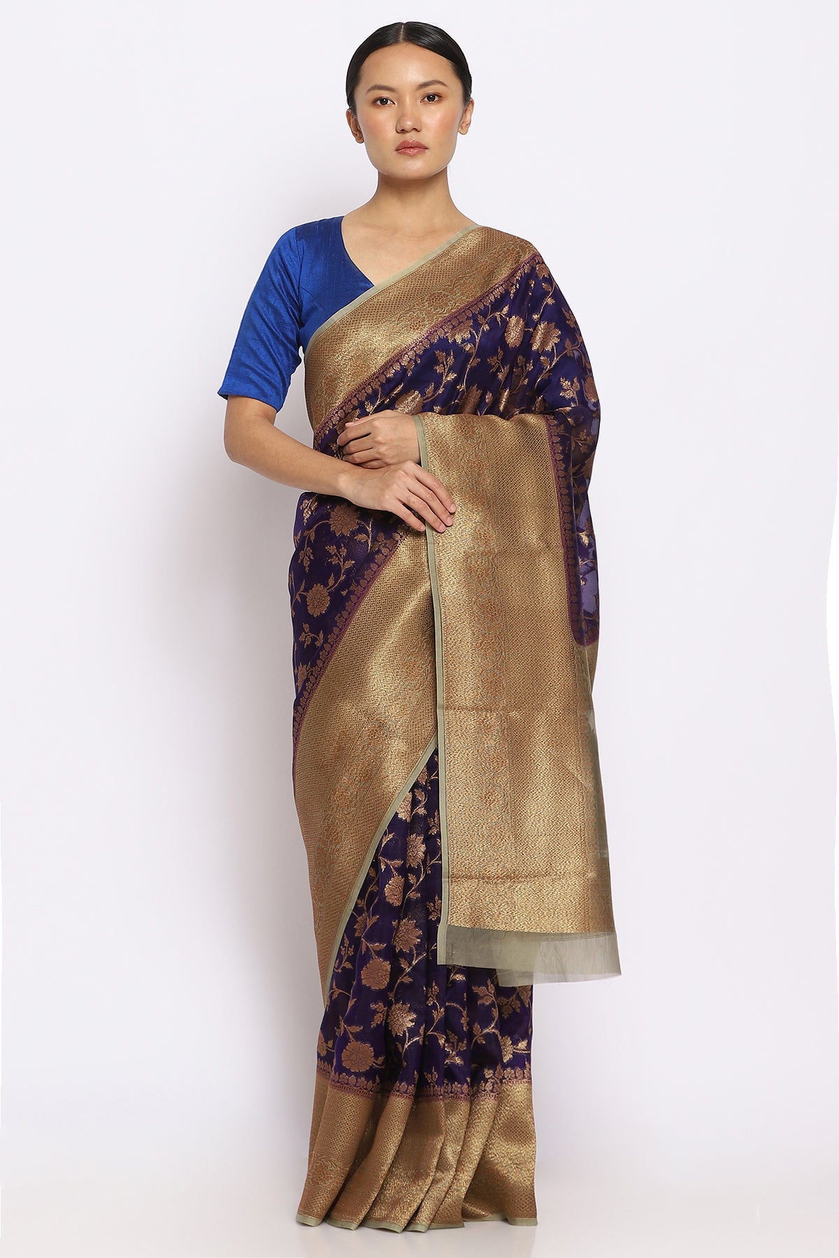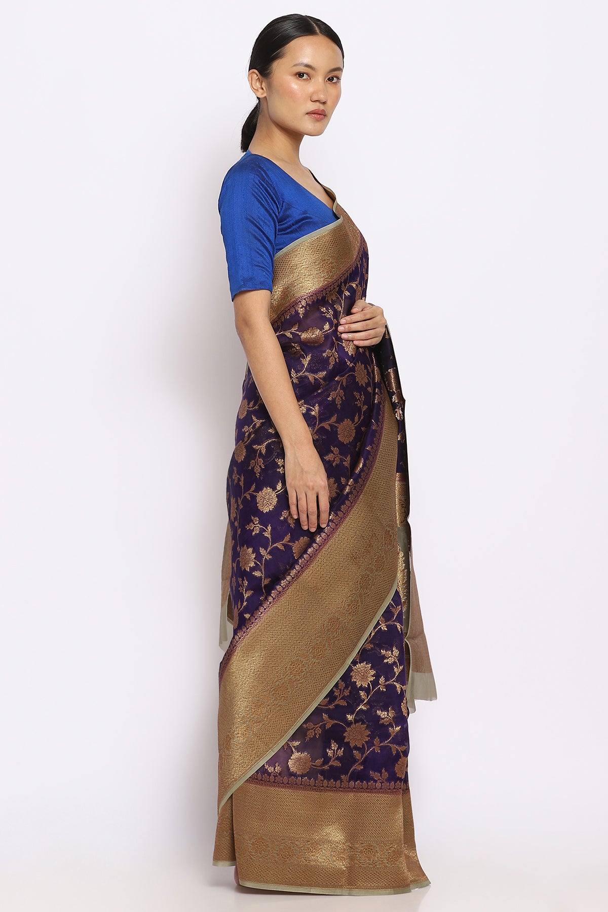Dark Purple Kora Silk Banarasi Saree