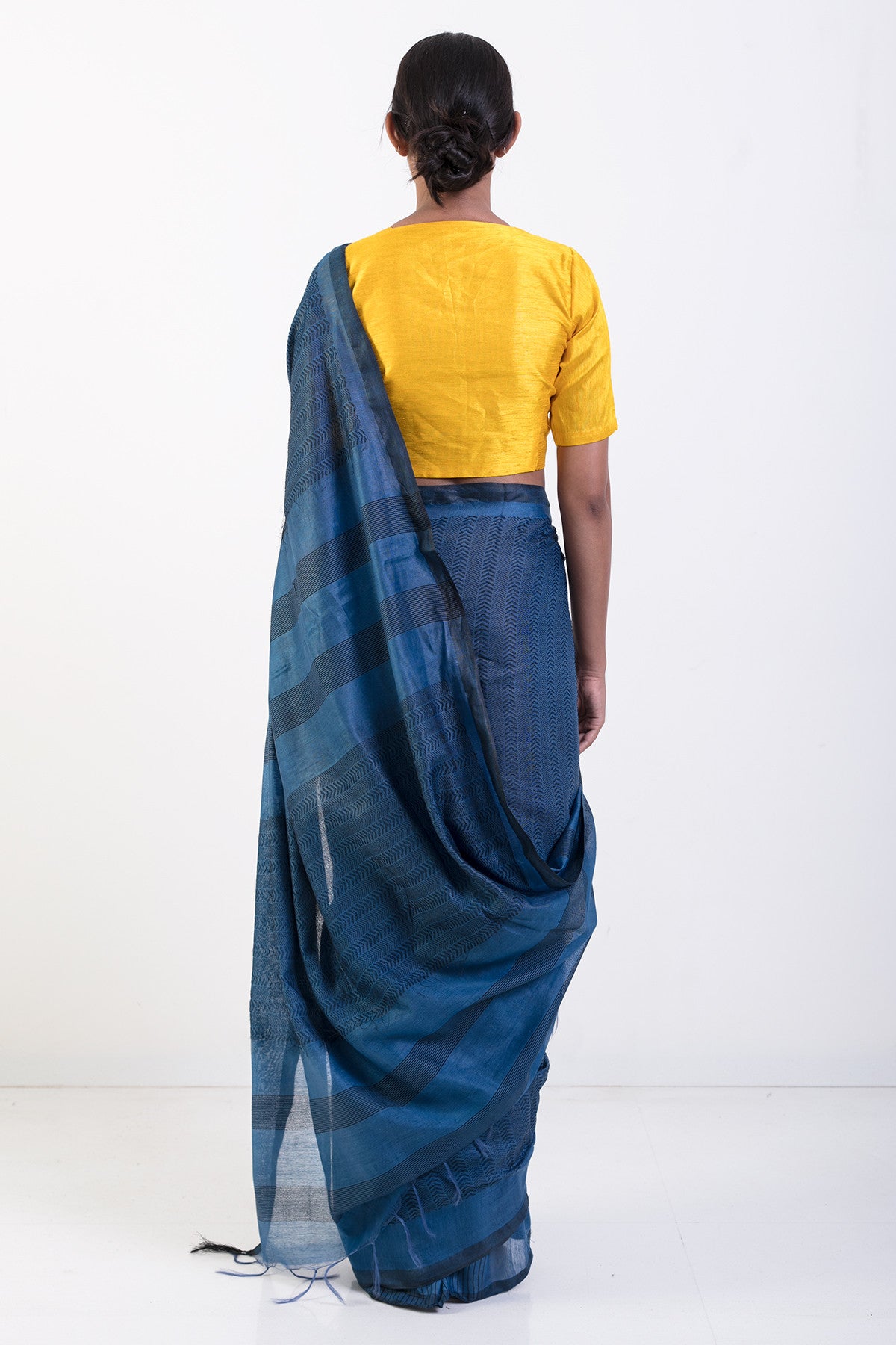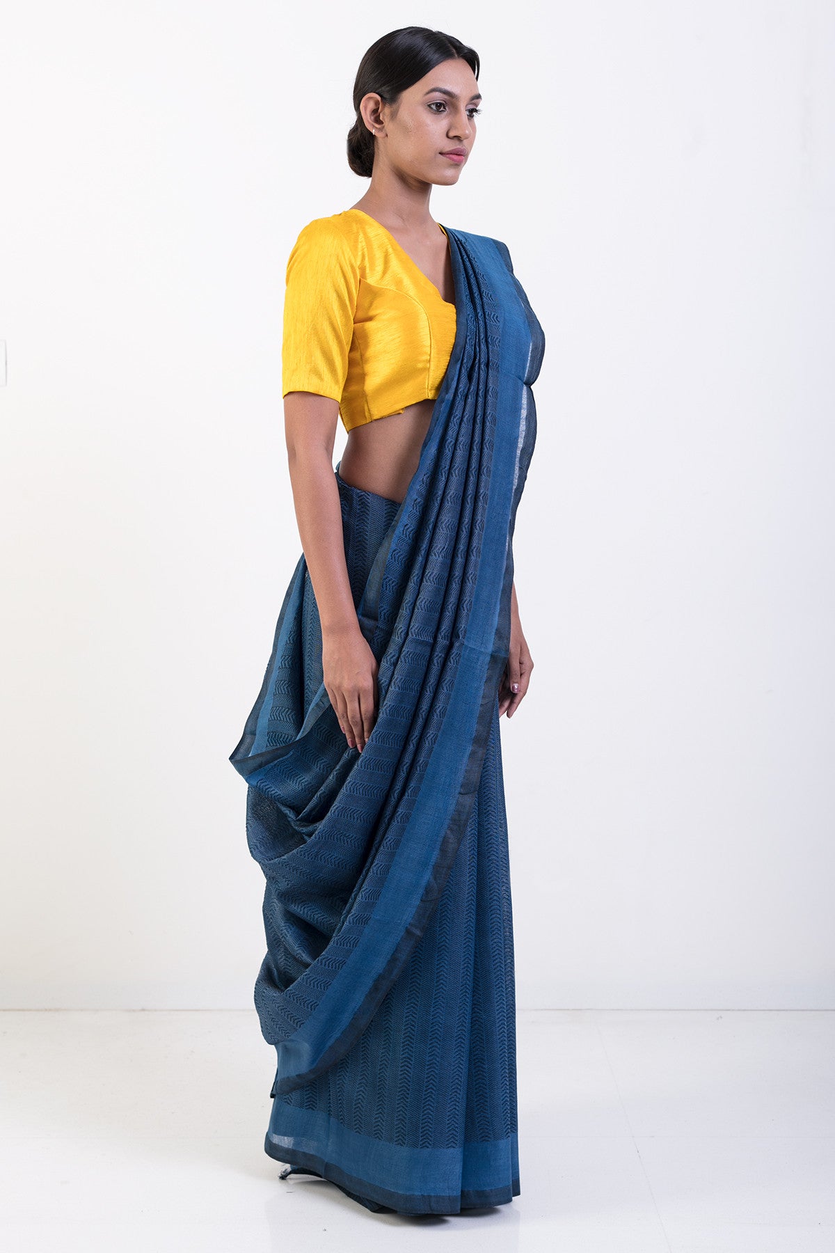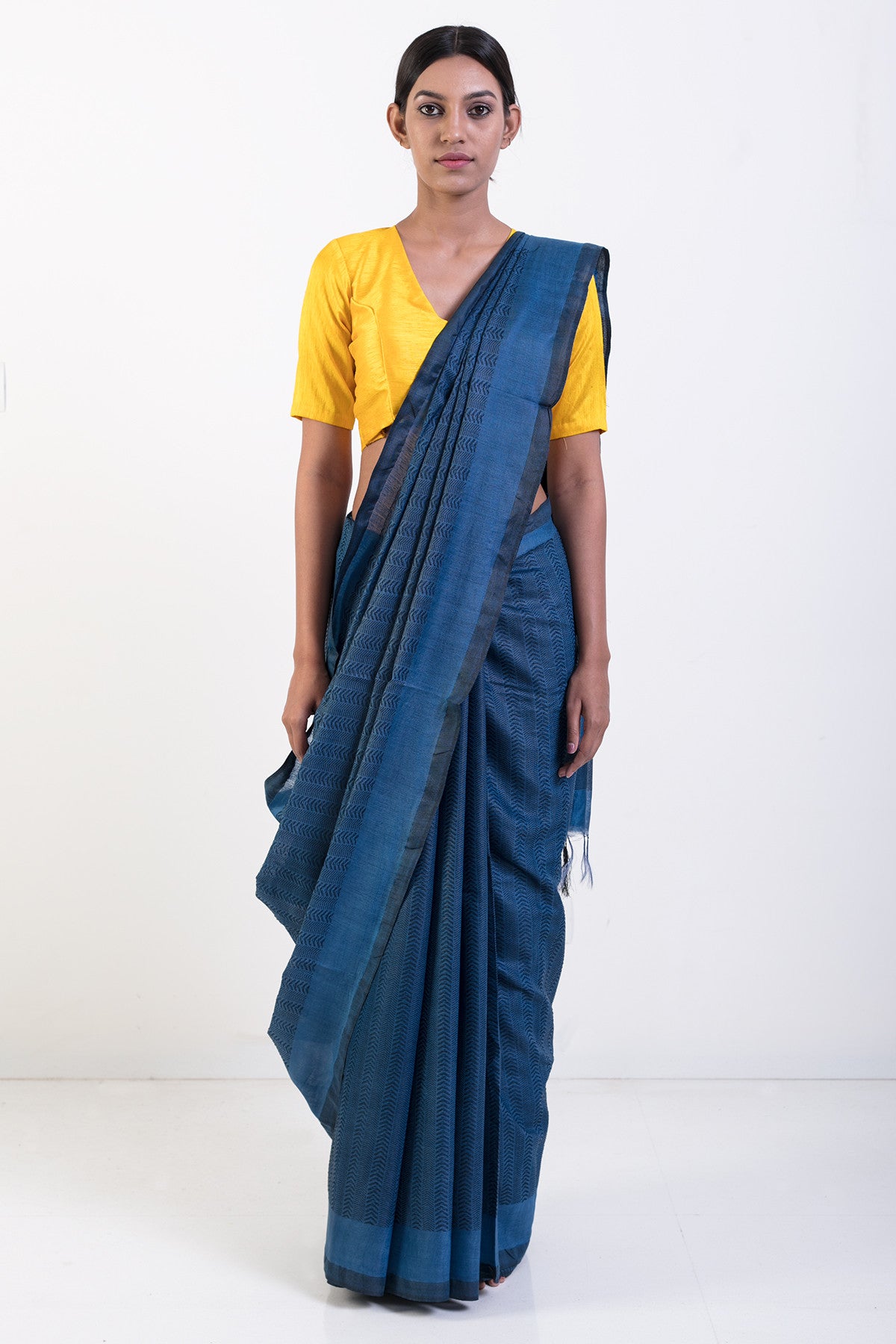 Blue Handwoven Pure Kosa Silk Saree with Self Woven Pattern