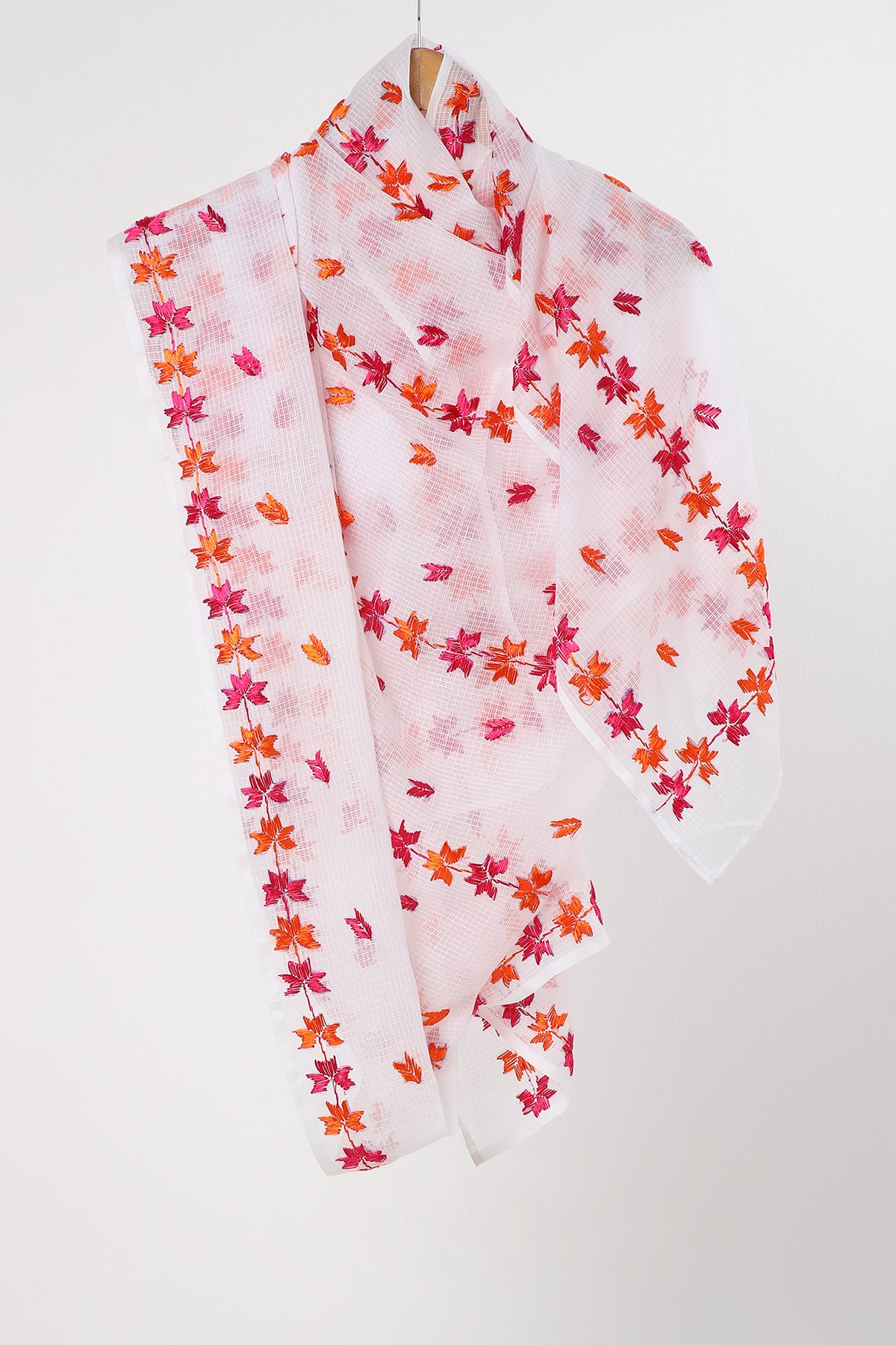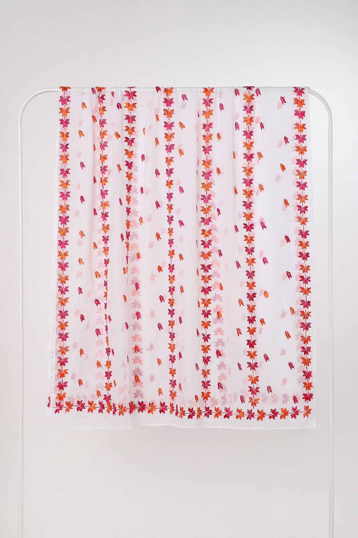 Pink and Orange Kota Cotton Bel Phulkari Dupatta