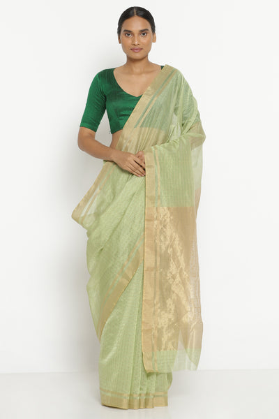Pistachio Green Silk Cotton Chanderi Check Saree