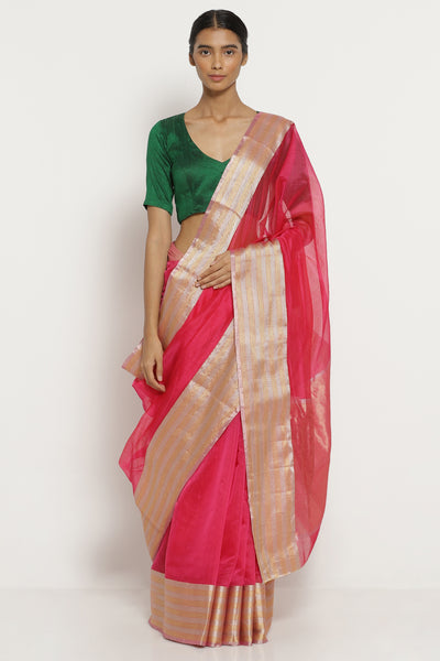 Gulabi Silk-Cotton Chanderi Saree