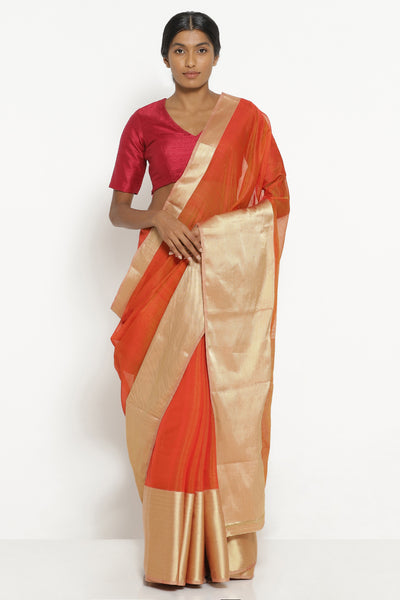 Ochre Orange Silk Cotton Chanderi Saree