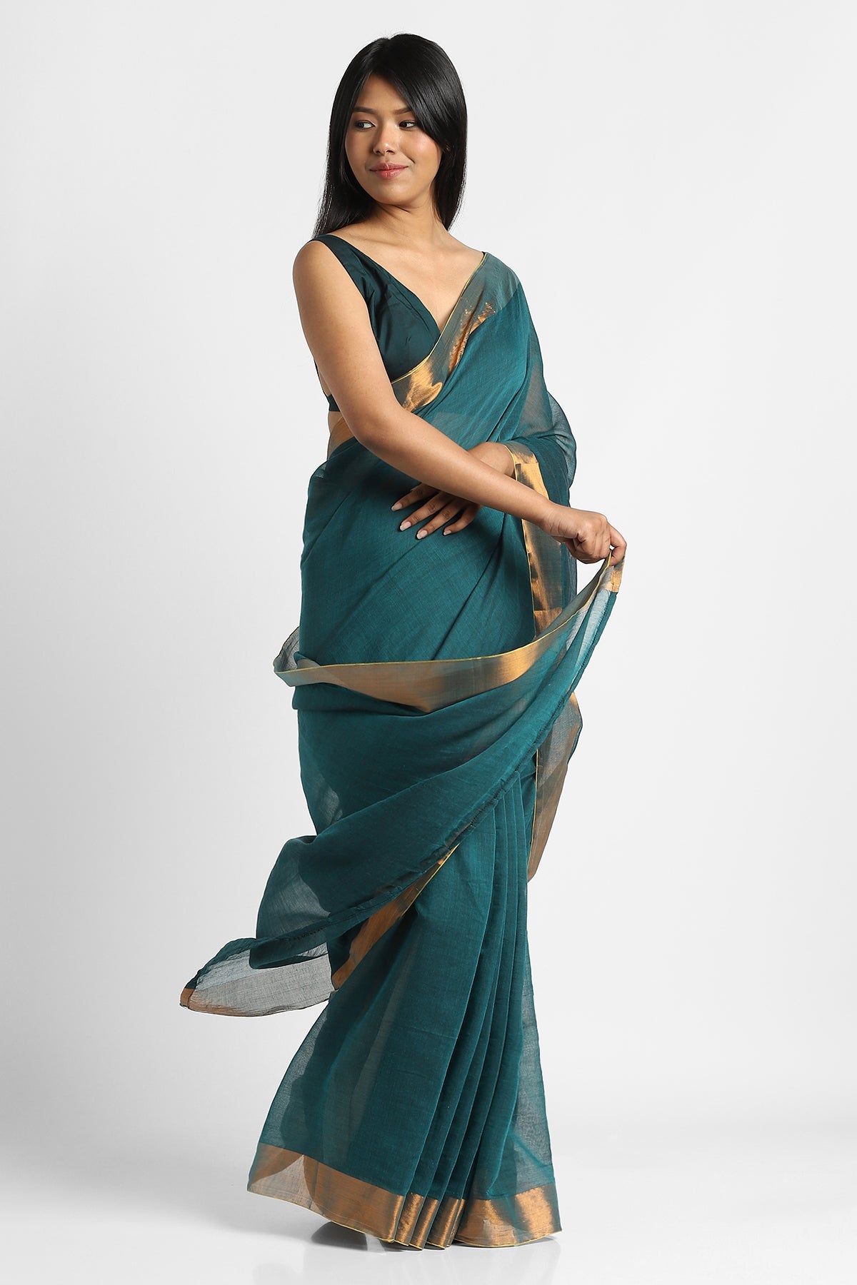 Pure cotton textile with zari border. An everyday saree, lightweight and easy to care for.