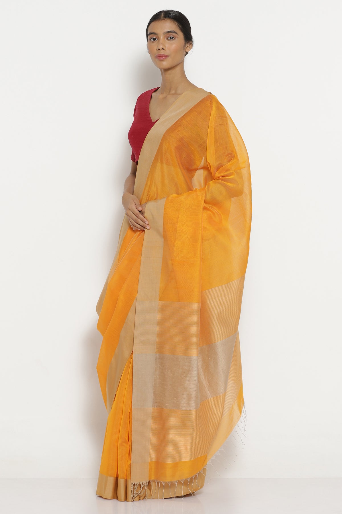 Mustard Silk-Cotton Maheshwari Summer Saree