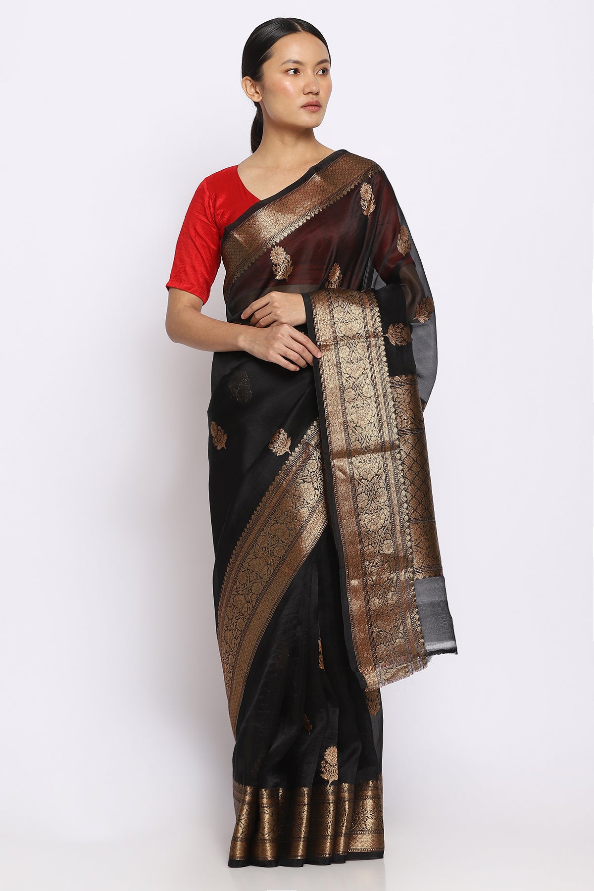 Black Silk Chanderi Saree