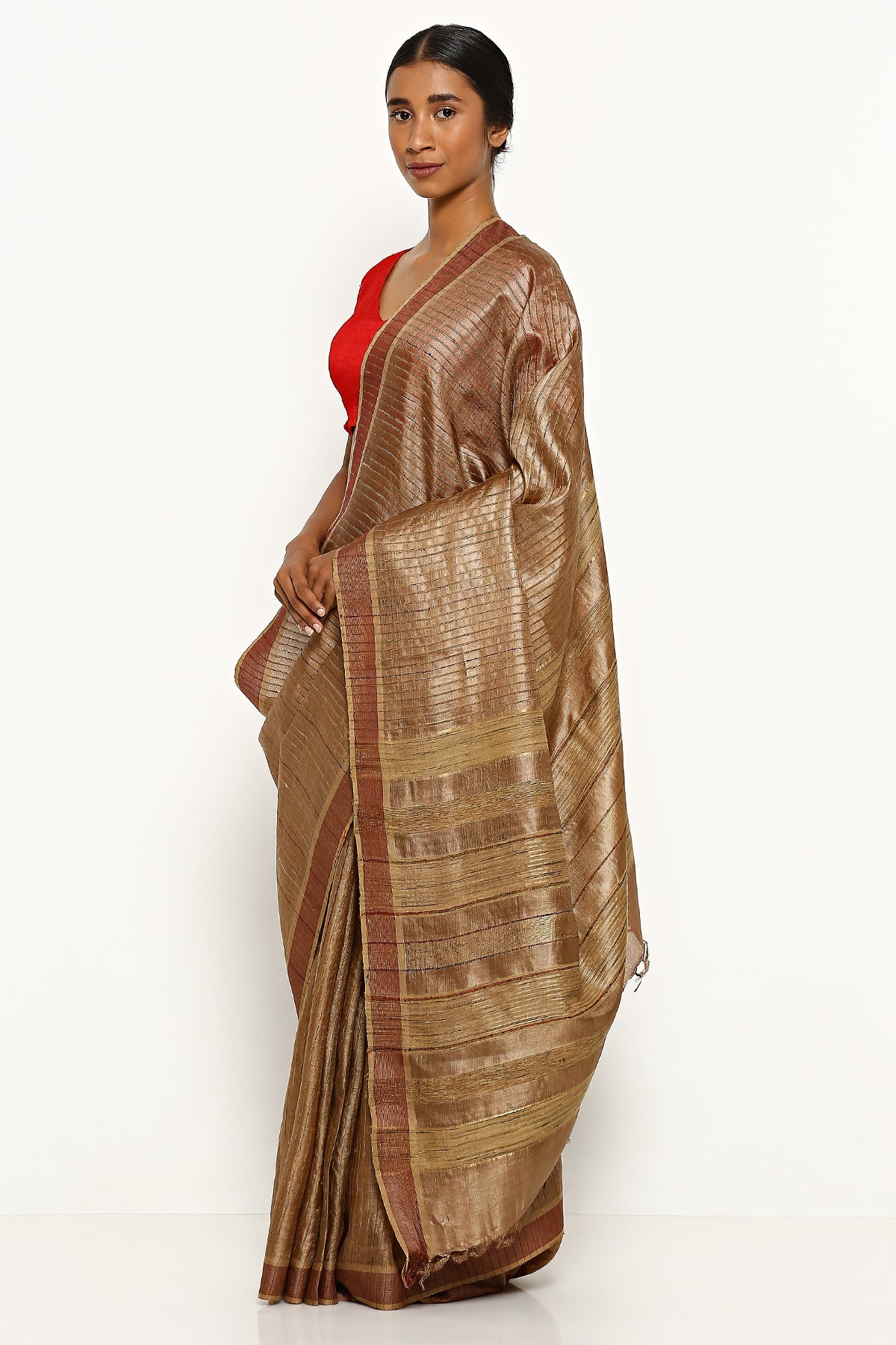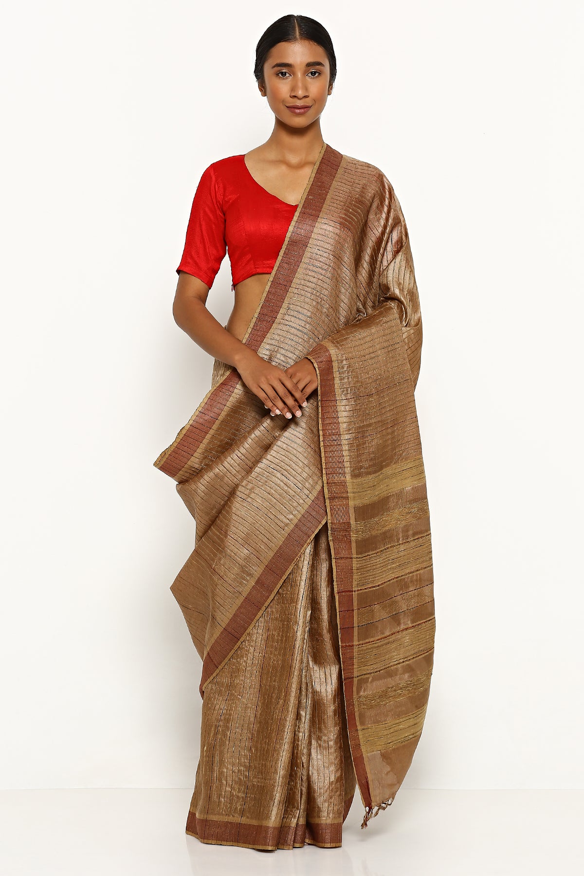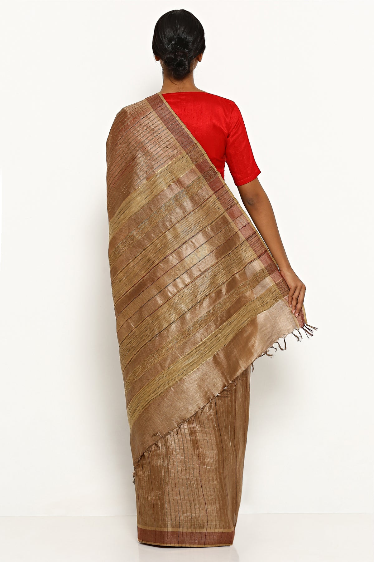 Brown Tussar Silk Stripe Saree