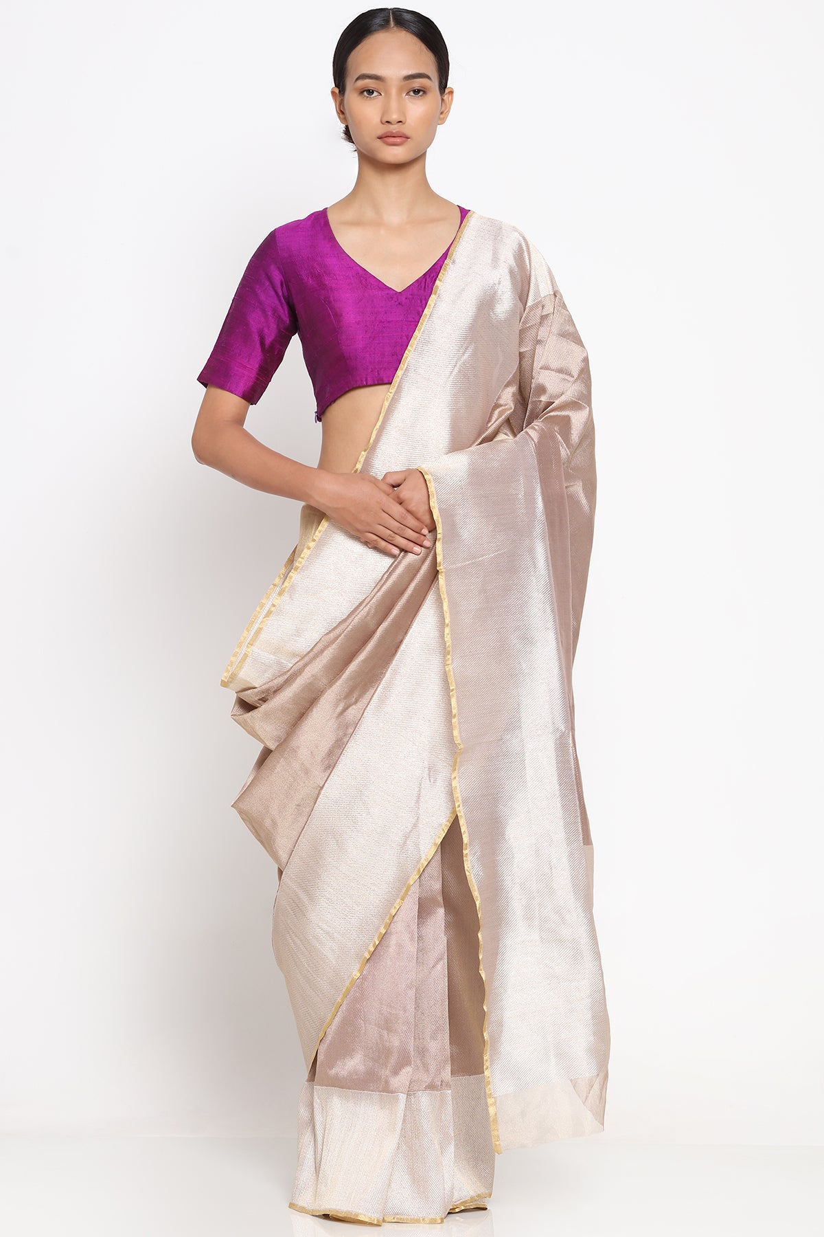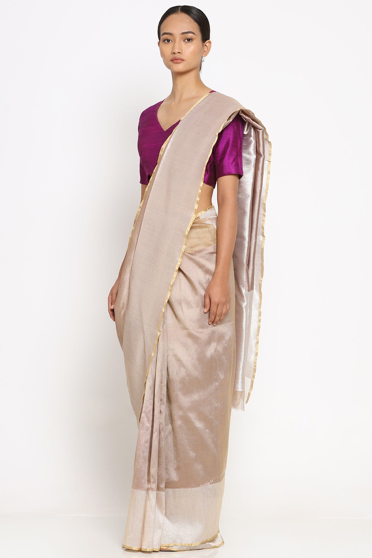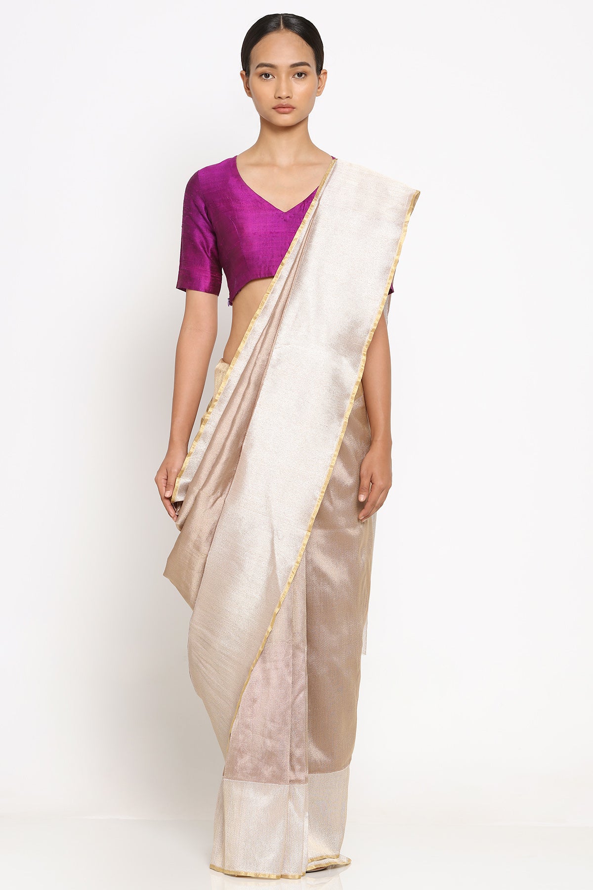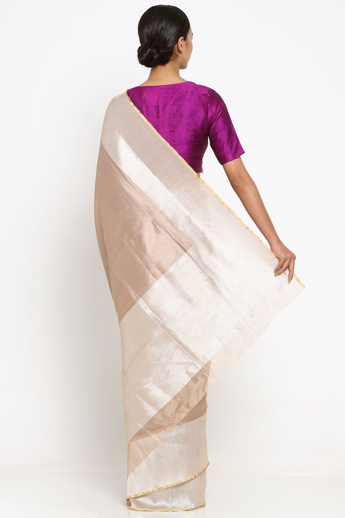Chanterelle Beige Silk Tissue Banarasi Saree