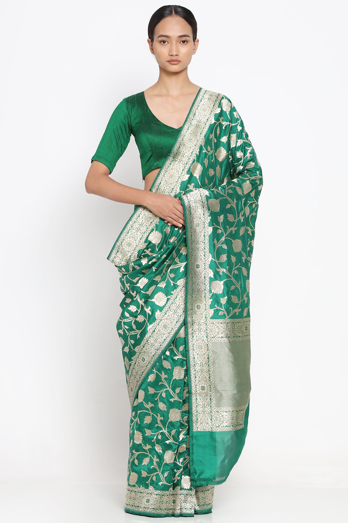 Emrald Green Silk Banarasi Saree