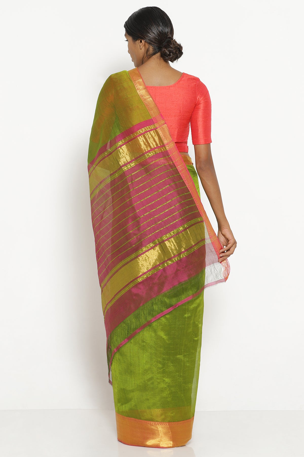 Green and Pink Silk-Cotton Mangalagiri Saree